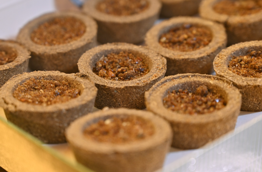 Cow dung sambrani is an eco-friendly incense made from natural cow dung and aromatic herbs, used for purifying the air and creating a serene, spiritual atmosphere during rituals and meditation